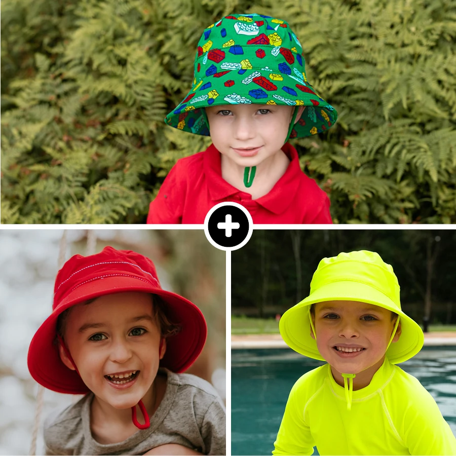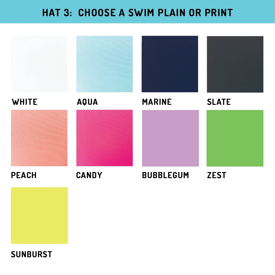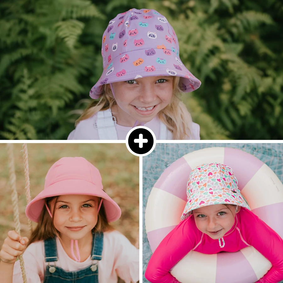Choose a new-season print or novelty hat, a plain colour, and a swim hat – the styles, prints, colours and sizes are totally your choice from the options in each drop-down menu. We’ll bundle up your bundle and sent it to you for free!