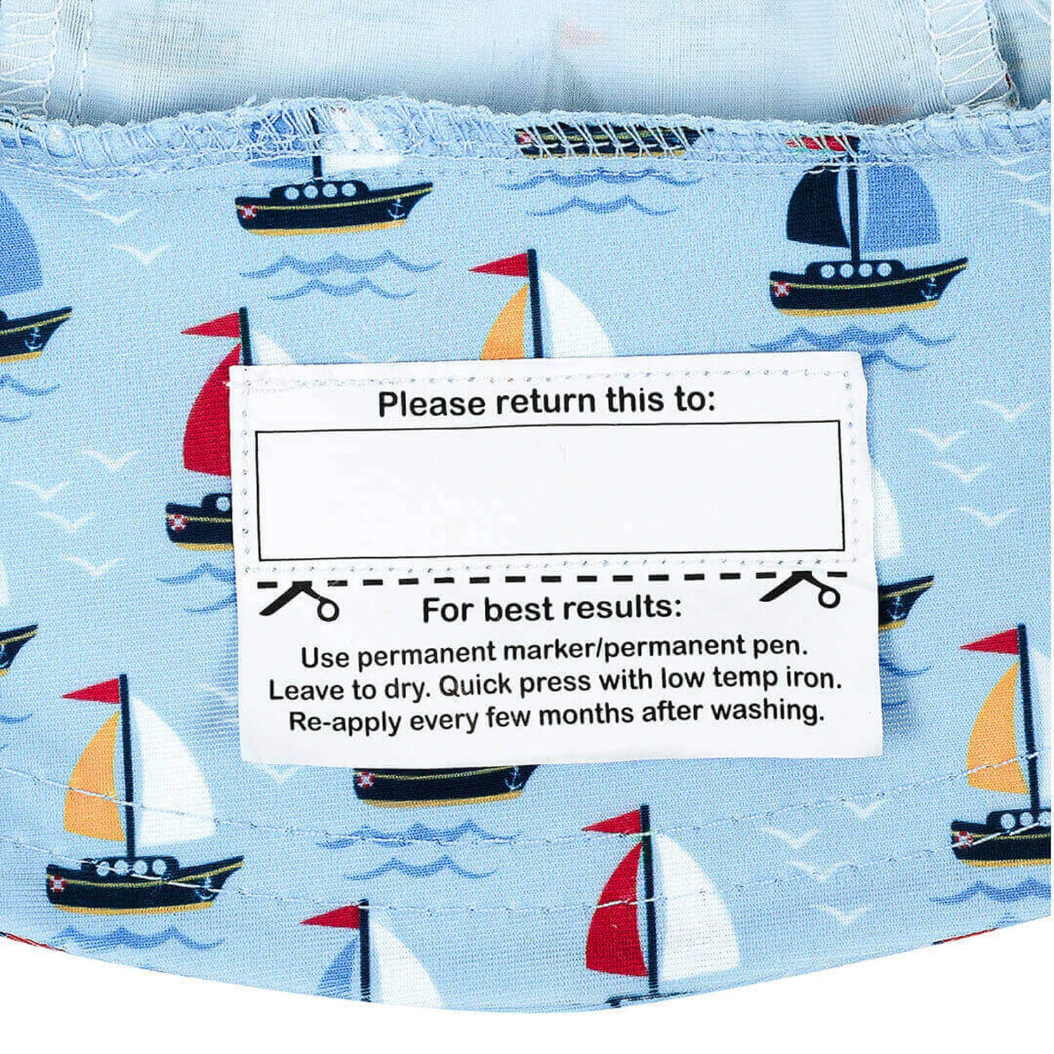 For little lovers of the deep blue sea, these cute sailboards with white, blue, yellow and red sails need a Marine or Slate rash vest to complete the look! Available in Legionnaire, Classic Bucket and Wet Bag.