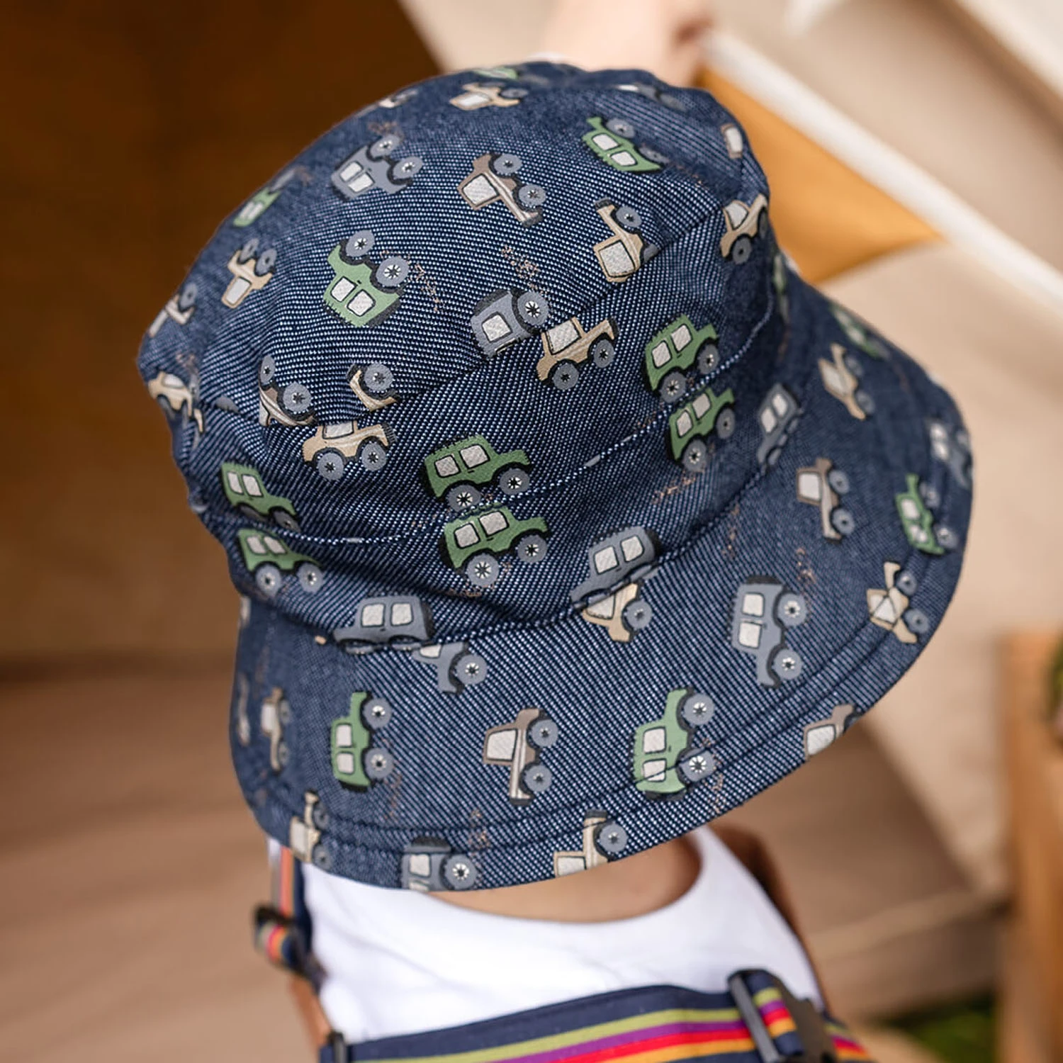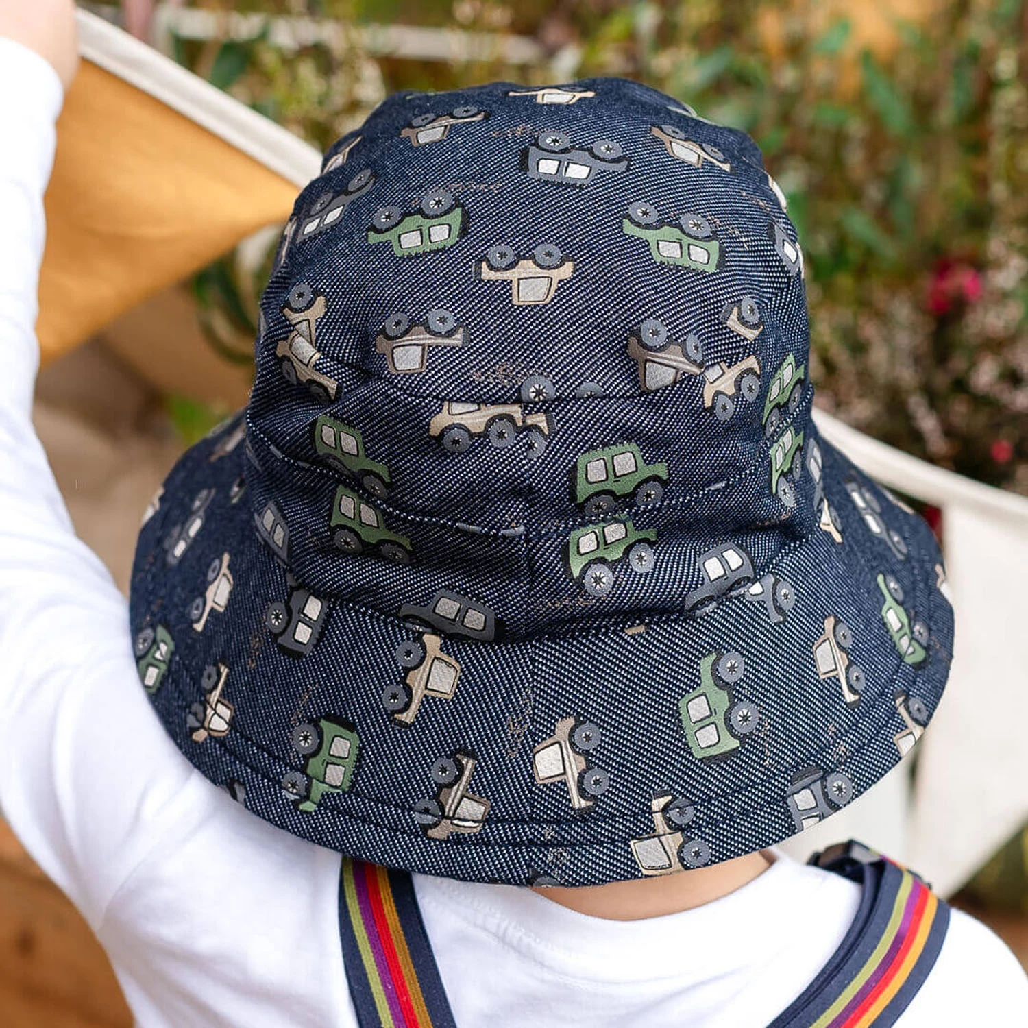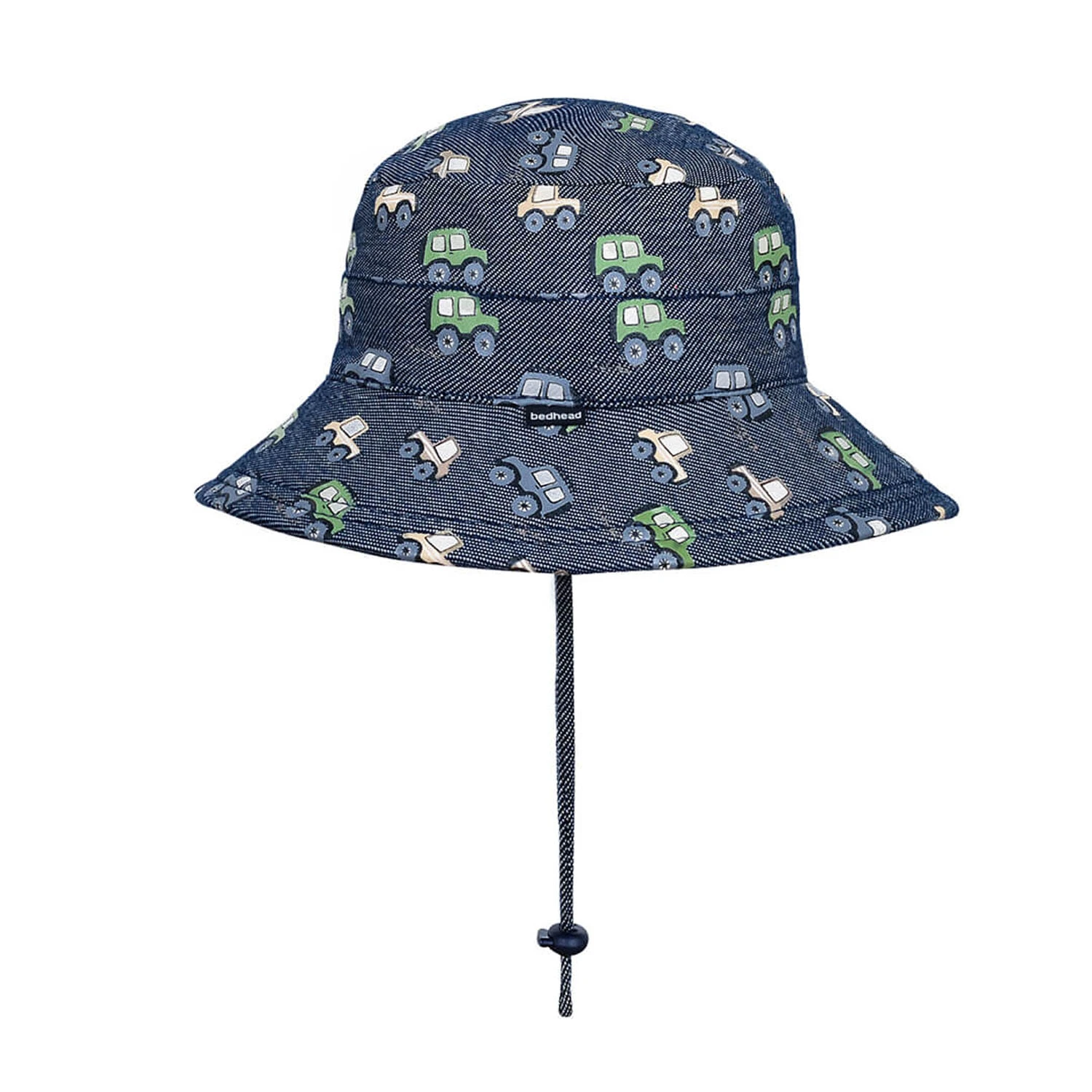 For little off-road adventurers, our Fourbie Classic Bucket Hat is the ultimate sun-safe, adventure-ready essential! Set against a denim-look stretch knit fabric, this print features rugged 4WDs in army green and sandy taupe, making it a must-have for any young explorer who dreams of hitting the open road.