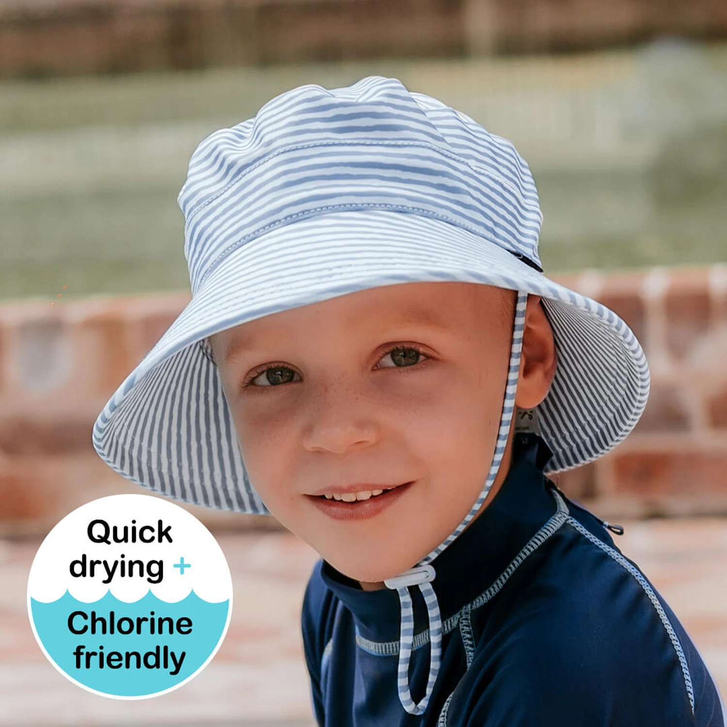 The Bedhead Swim Bucket Hat is a UPF50+ kids sun hat with our unique 'anti-flop' brim that won't flop in front of children's eyes (even when wet!)