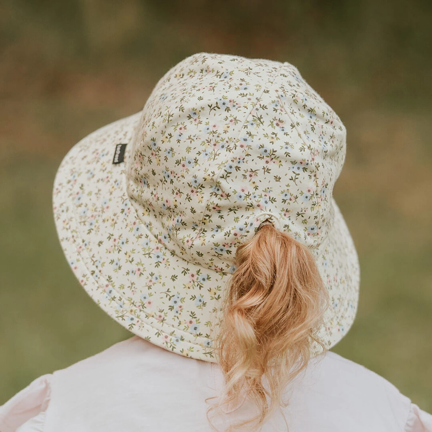 The Bedhead Ponytail Bucket hat is a UPF50+ kids sun hat featuring our unique 'anti-flop' technology ensuring brims won't flop in front of their eyes!