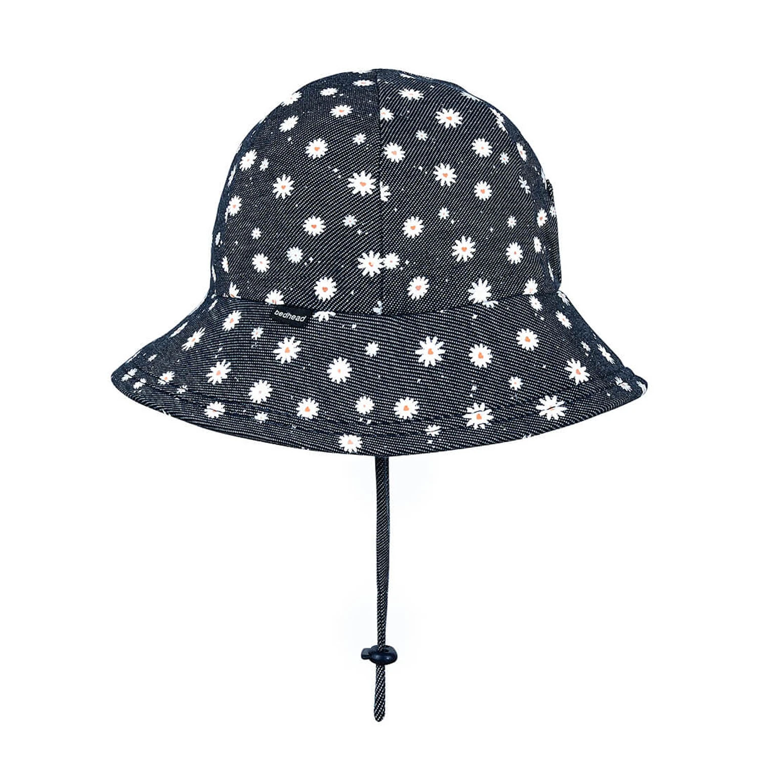 Our two ultimate best-sellers have come together for this print: denim and florals! Simple white daisies freshen up the denim backdrop. Tiny pink heart centres are the finishing touch! Available in Legionnaire, Toddler Bucket and Ponytail Bucket.