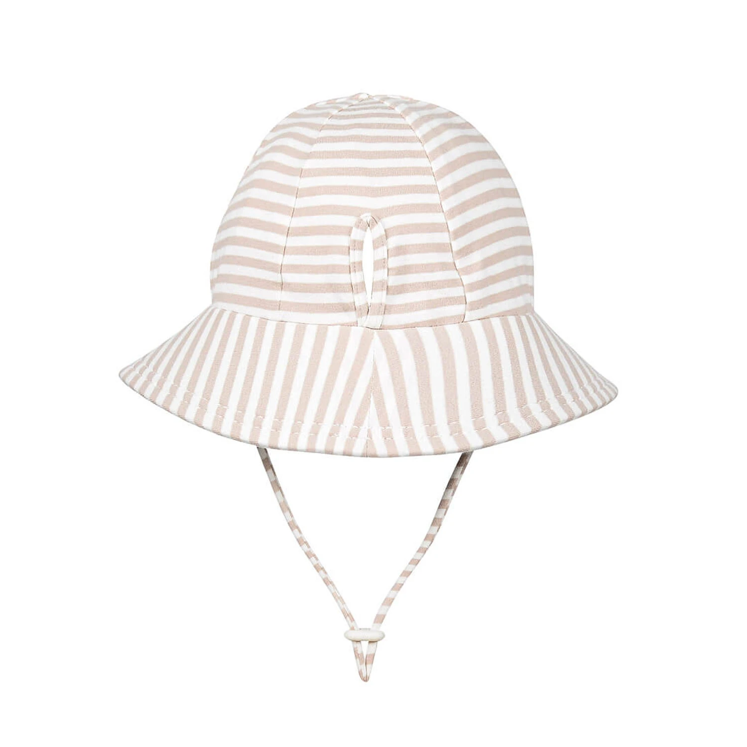 We’ve yet to find a stripe we don’t like! This pinky-beige toned stripe paired with ivory is minimal enough to be a plain with a print, but patterned enough to be the print with a simple outfit. Available in Legionnaire, Toddler Bucket, Ponytail Bucket and Classic Bucket.