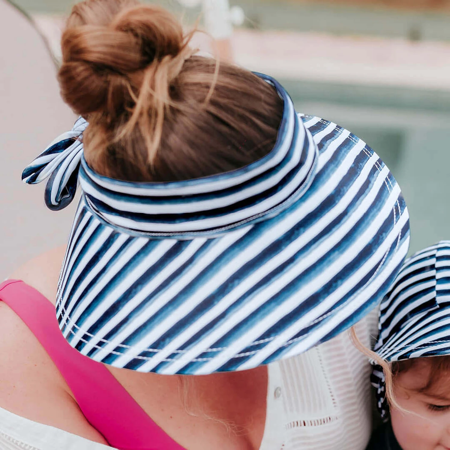 Ladies Swim Visor is a UPF50+ sun hat featuring our unique 'anti-flop' brim that won't flop in eyes no matter how wet it gets! Soft, comfy and stylish, the hat is made of high-quality chlorine-resistant nylon stretch knit with quick-drying ability. In four size ranges, all hats have ties at the back so you can adjust to the perfect fit! We've designed our Ladies Swim Visors to coordinate with some of the children's swim hats in the range for matching mum-and-mini style.