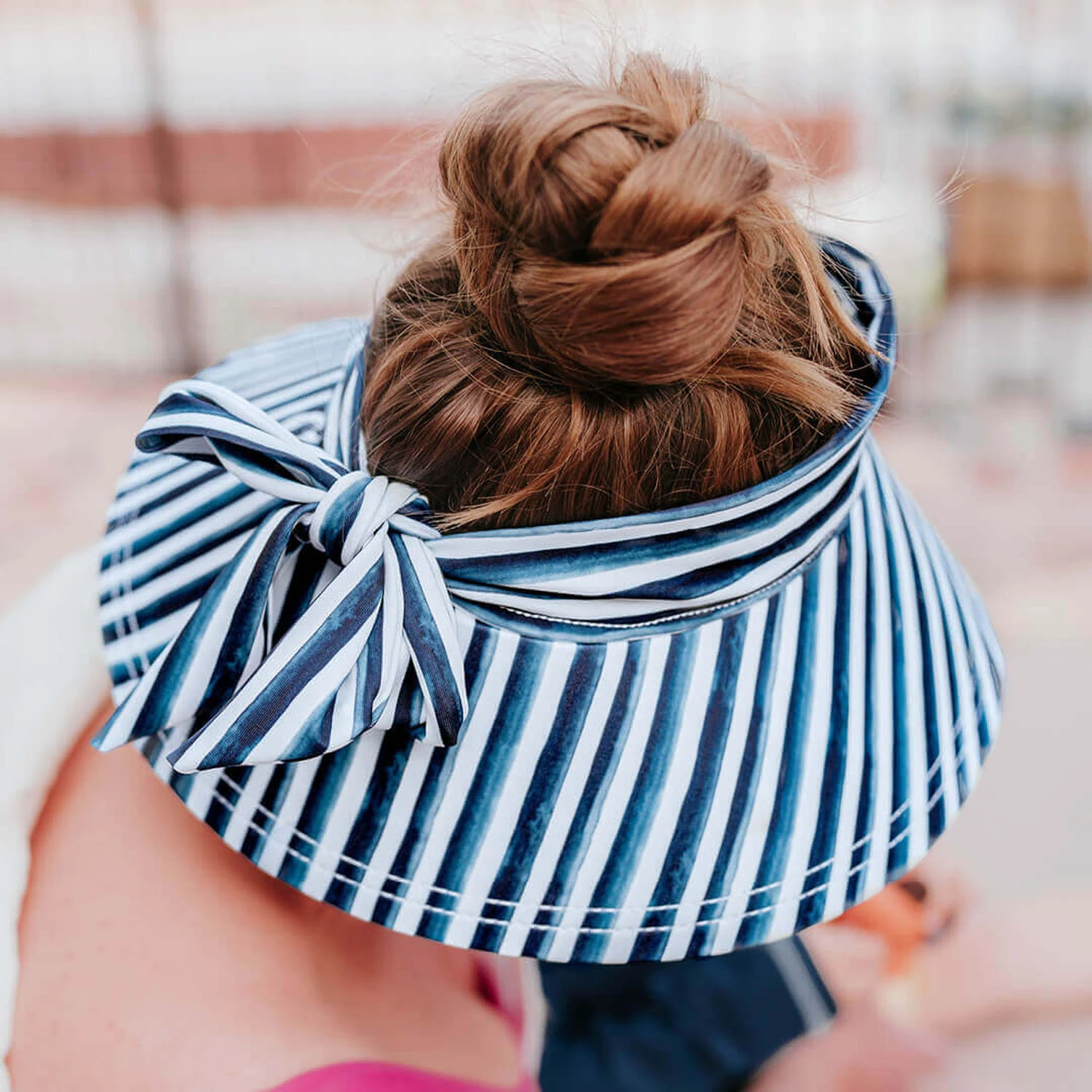 Finally! A swim hat for the ladies! And not just that - for the ladies who have a lot of hair, love wearing their hair up, or prefer that half/half hat feel. This wide-brimmed swim visor is super light and airy to wear, adjusts around the head for the perfect fit, and gives you UPF50+ excellent sun protection while letting your head breathe a little and your bun feel free!