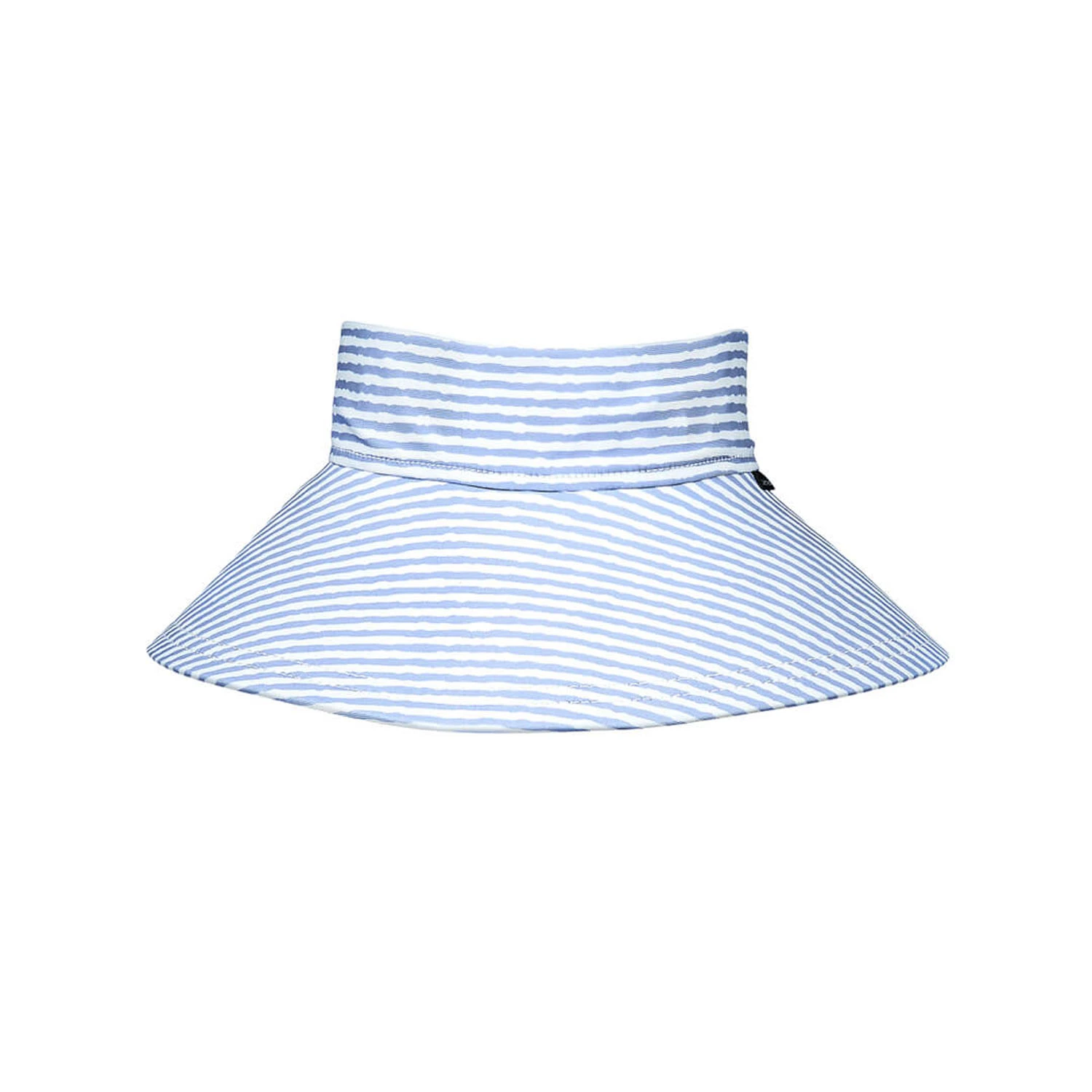 The Hamptons style in hat form! An imperfect stripe, the perfect shade of blue and crisp white come together to create the ultimate relax-at-the-beach-in-a-deck-chair vibe. Available in Legionnaire, Ponytail Bucket, Classic Bucket, Ladies Swim Visor and Wet Bag.