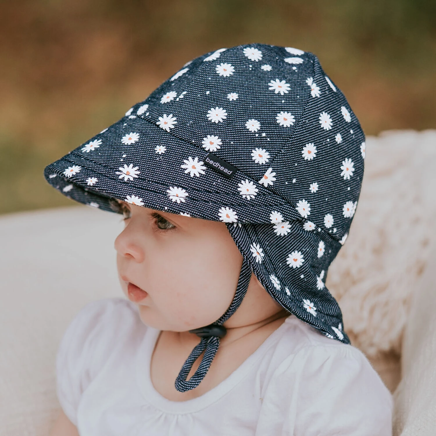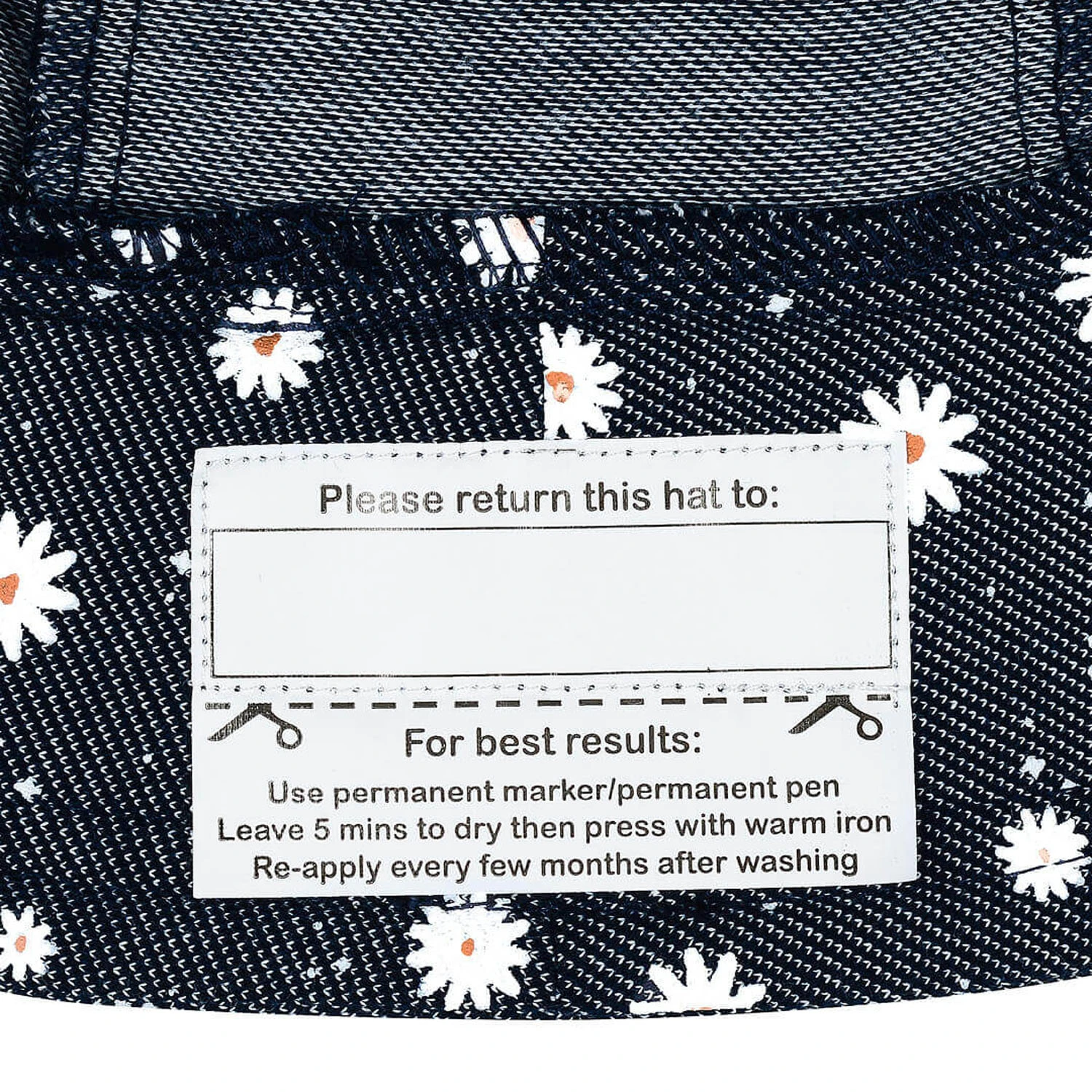 Our two ultimate best-sellers have come together for this print: denim and florals! Simple white daisies freshen up the denim backdrop. Tiny pink heart centres are the finishing touch! Available in Legionnaire, Toddler Bucket and Ponytail Bucket.