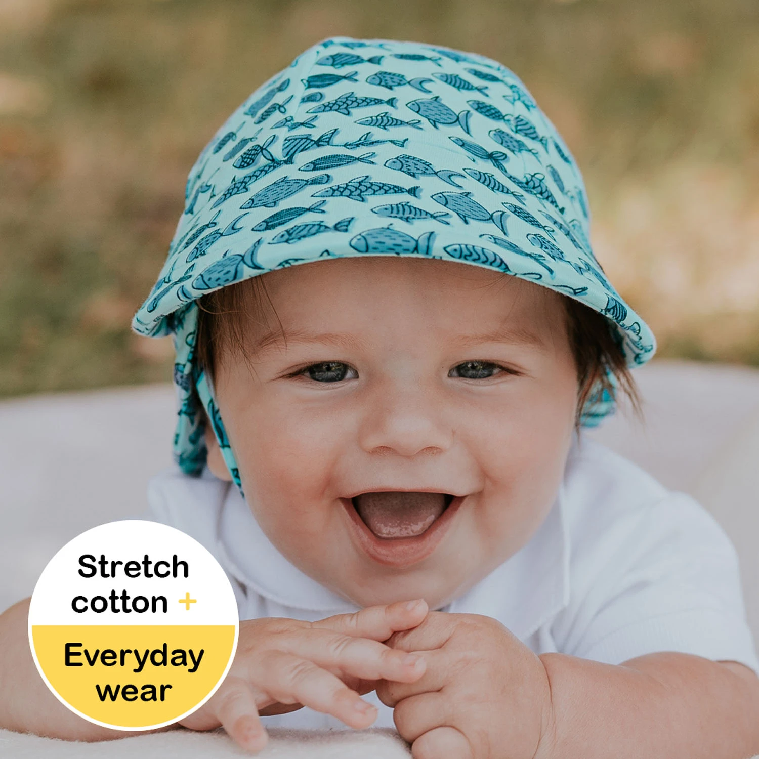 The Legionnaire hat is built for comfort - so much that kids forget they're wearing it! This makes it the best style for hat-haters and babies to wear while in prams and baby carriers. Made with super-stretchy and lightweight cotton jersey for a perfect fit keeping your little ones head cool under the hot Australian conditions & rated UPF50+ excellent protection.
