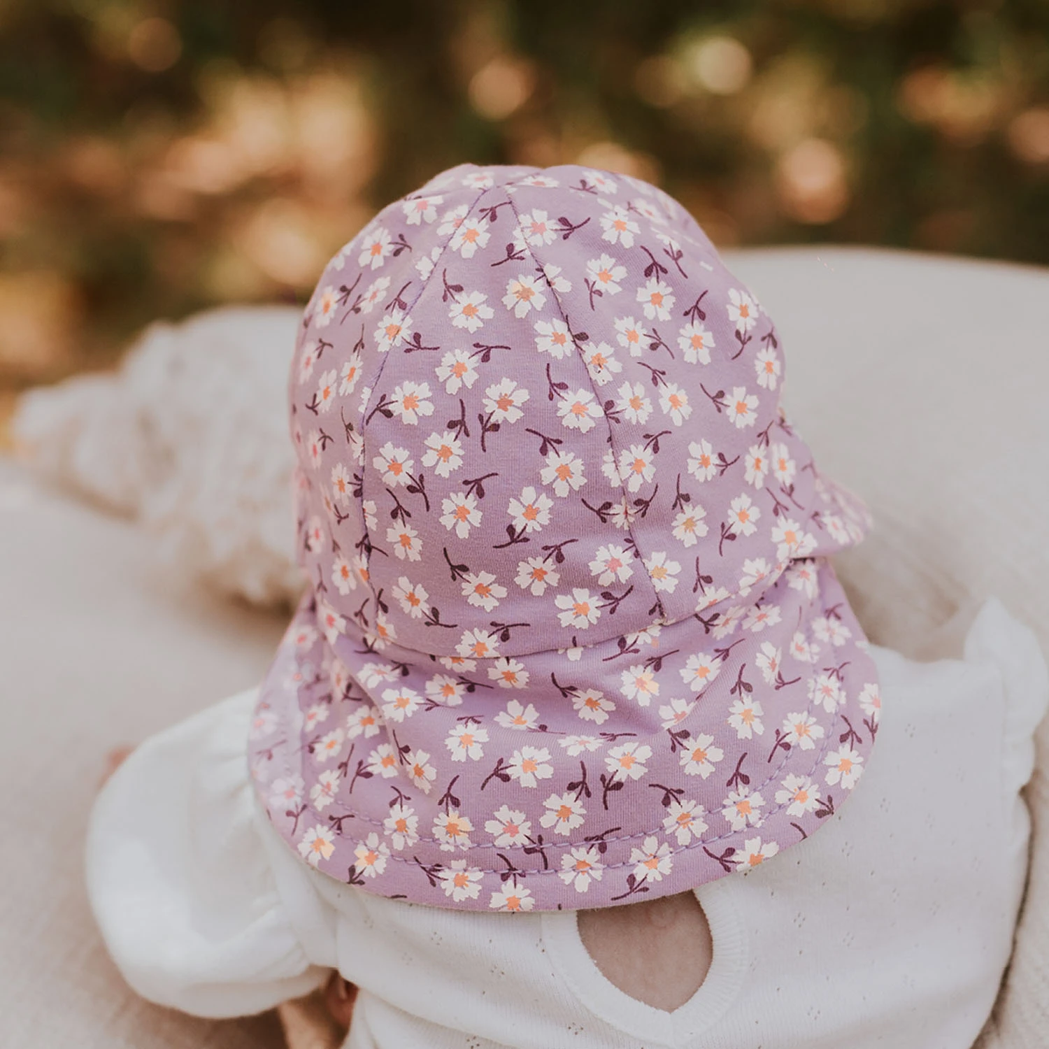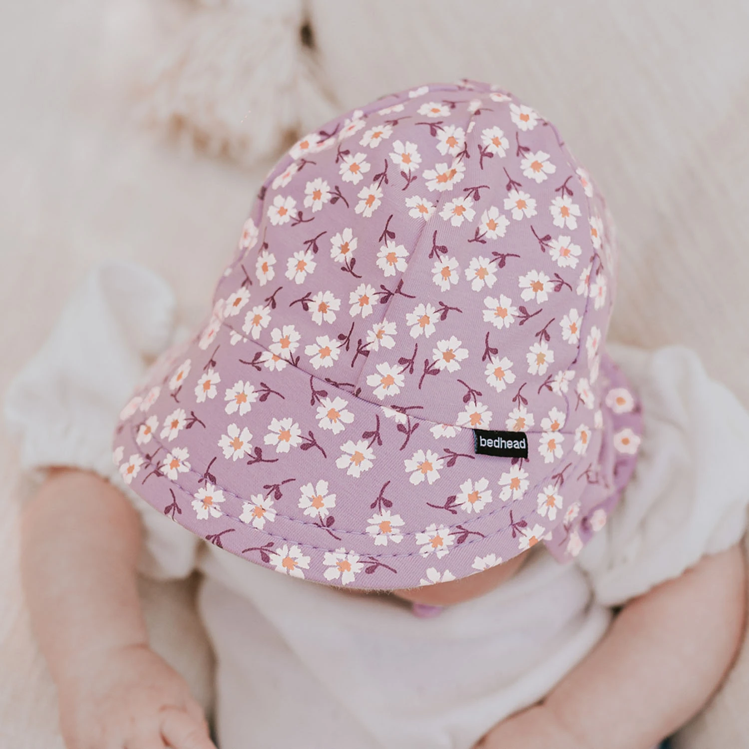Lilac and fresh white daisies is a match made in flower heaven! We love it paired with denim shorts, cute ruffled tee and tan sandals. Available in Legionnaire, Toddler Bucket and Ponytail Bucket.