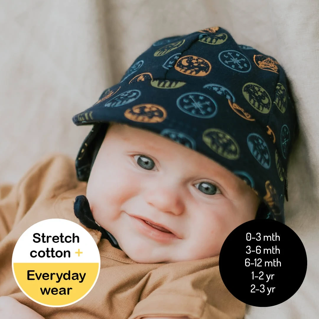 The Legionnaire hat is built for comfort - so much that kids forget they're wearing it! This makes it the best style for hat-haters and babies to wear while in prams and baby carriers. Made with super-stretchy and lightweight cotton jersey for a perfect fit keeping your little ones head cool under the hot Australian conditions & rated UPF50+ excellent protection.