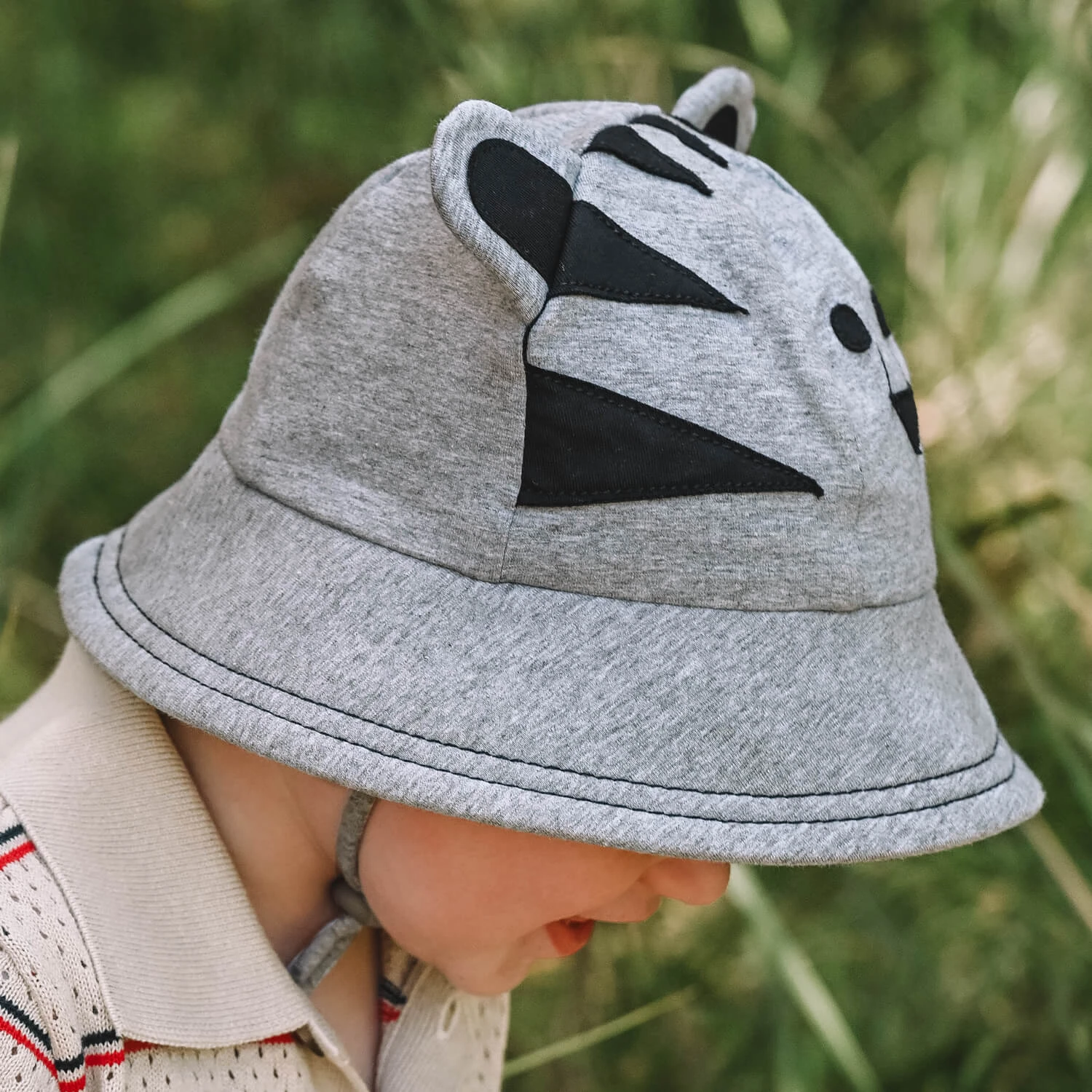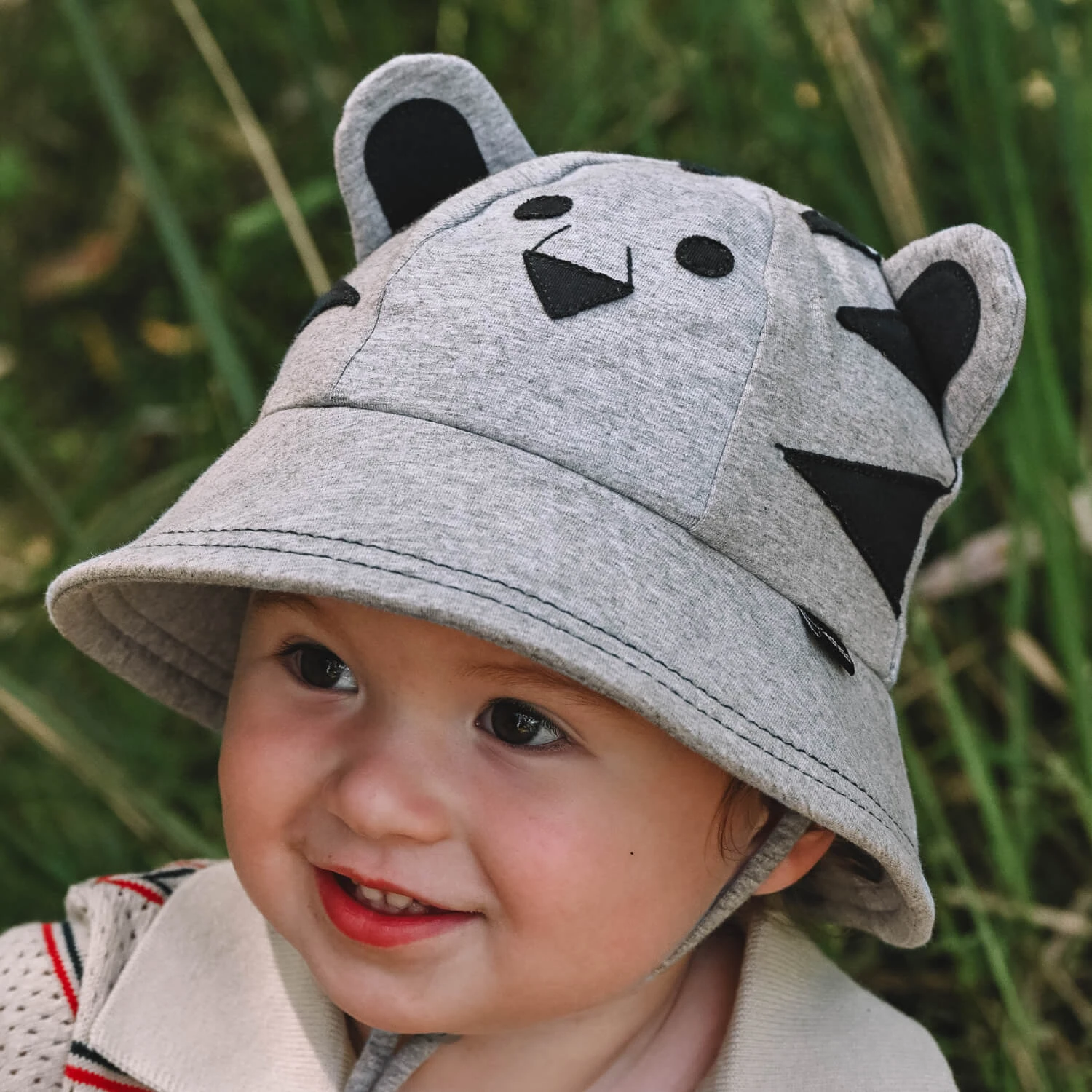 For the fearsome cub in your life, our Tiger hat has ears! A face! And a whole bunch of adorableness to dress up our grey marle Toddler Bucket hat.
