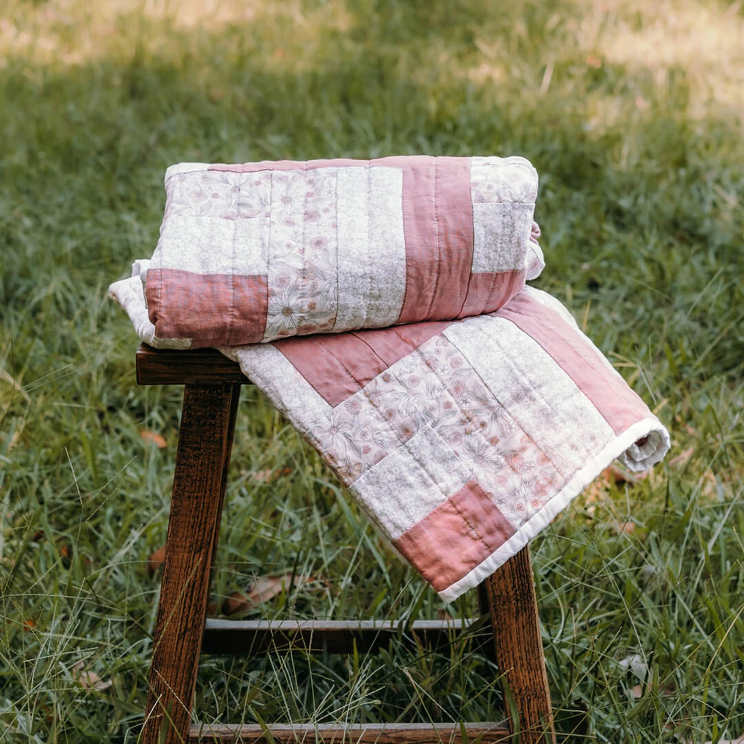 Handmade by the Bedhead grandma, our 100% organic linen quilts have turned waste into something beautiful to be passed down through the ages. Leftover fabric from our reversible Heritage range of hats have been recut and sewn with love into one-of-a-kind baby blankets. Bedhead’s founder Richelle tasked her mother – the Bedhead grandma! – with the job of repurposing our scrap linen fabric into heirloom pieces that make the ultimate baby shower gift or new-baby present. Each blanket took three full days to create using timeless quilting methods. Blankets vary in size, prints, colours and pattern – they’re truly unique. Generously sized, they’re slightly larger than a regular cot blanket, allowing them to also be used as a play mat, couch throw, picnic rug or extra blanket when bub graduates to a single bed.