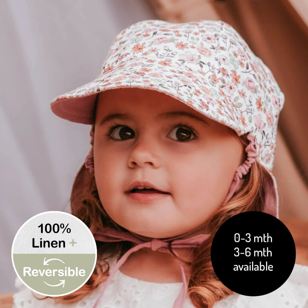 Bedhead Heritage Lounger Baby Flap Hats are light on heads, making them the ideal first hat for babies as they forget they’re wearing them! The soft flap lies flat behind baby’s neck while they’re in a pram or baby carrier, and the brim is slightly upright letting them see the world. Made from 100% eco-friendly linen which can self-cool in summer and warm in winter, the Lounger hat provides UPF50+ sun protection without overheating little heads.