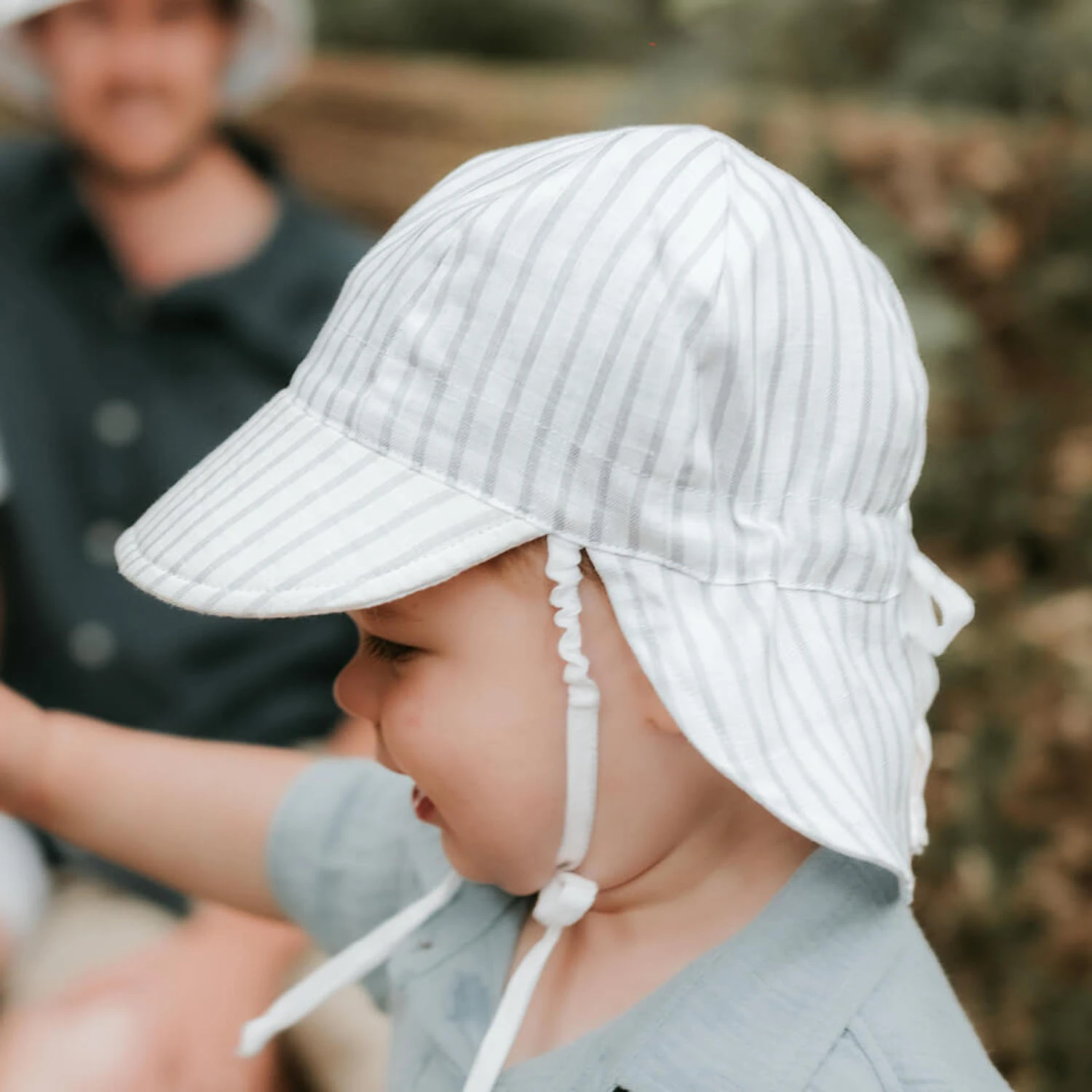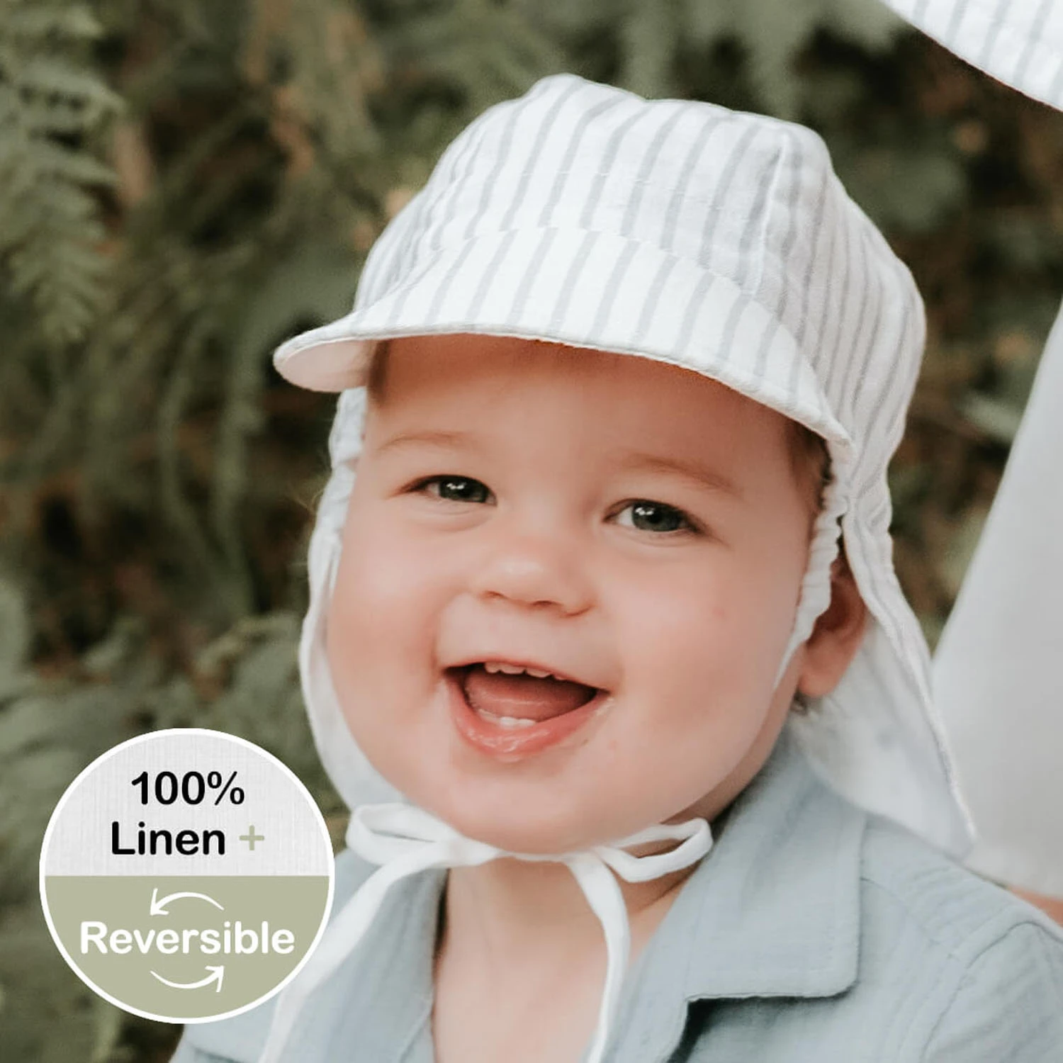 Bedhead Heritage Lounger Baby Flap Hats are light on heads, making them the ideal first hat for babies as they forget they’re wearing them! The soft flap lies flat behind baby’s neck while they’re in a pram or baby carrier, and the brim is slightly upright letting them see the world. Made from 100% eco-friendly linen which can self-cool in summer and warm in winter, the Lounger hat provides UPF50+ sun protection without overheating little heads.
