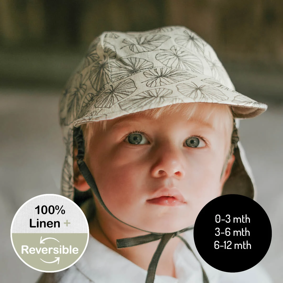 'Lounger' Baby Reversible Flap Sun Hat - Leaf / Moss