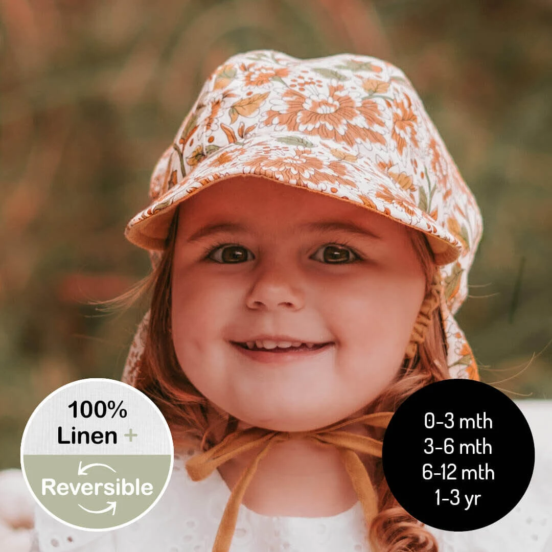 Bedhead Heritage Lounger Baby Flap Hats are light on heads, making them the ideal first hat for babies as they forget they’re wearing them! The soft flap lies flat behind baby’s neck while they’re in a pram or baby carrier, and the brim is slightly upright letting them see the world. Made from 100% eco-friendly linen which can self-cool in summer and warm in winter, the Lounger hat provides UPF50+ sun protection without overheating little heads.