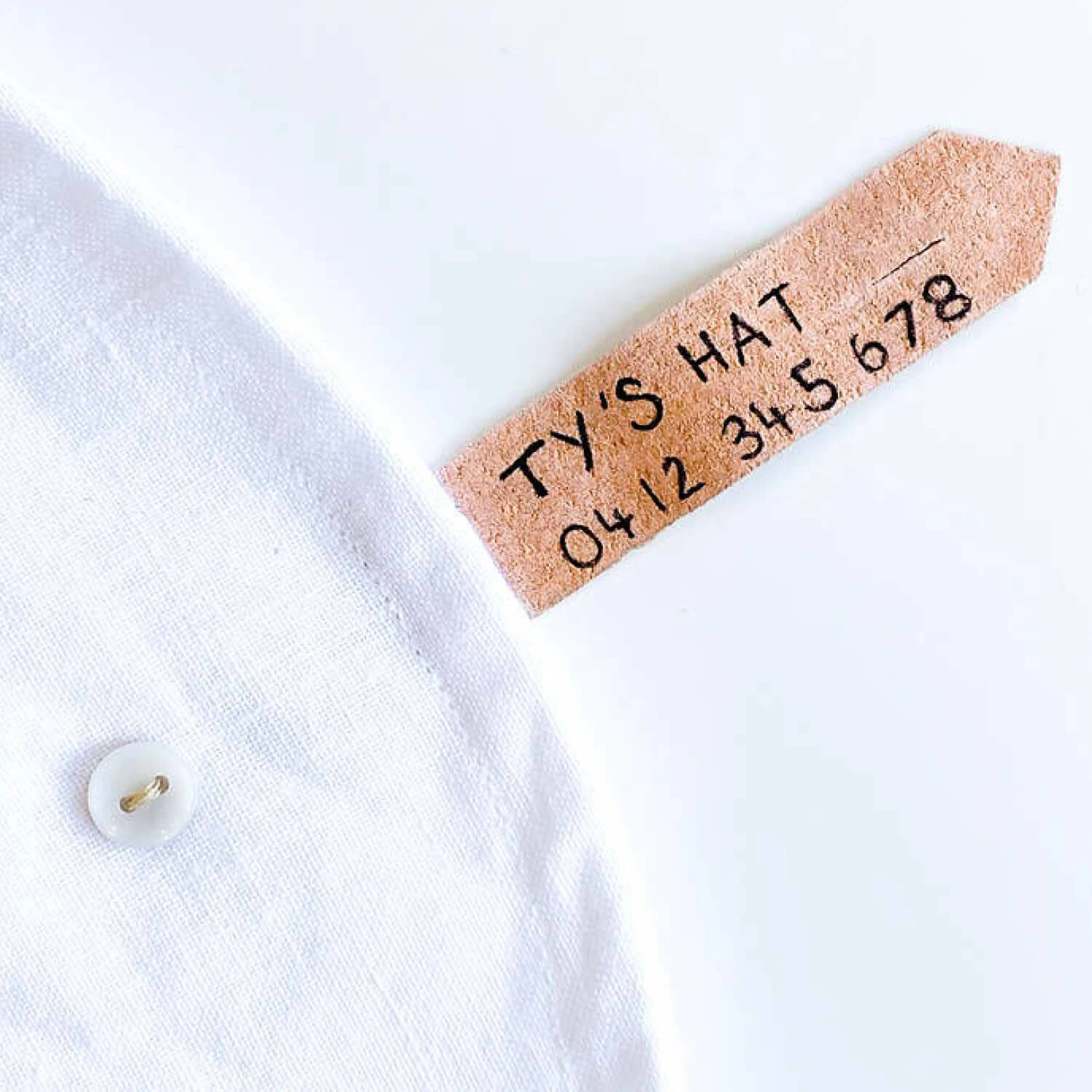 - Beautiful button-up 'Return to' label for names to help hats get home safely.