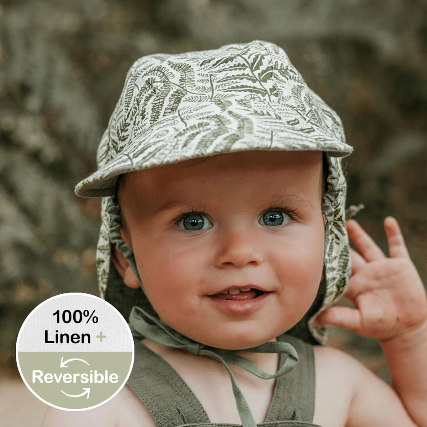 Bedhead Heritage Lounger Baby Flap Hats are light on heads, making them the ideal first hat for babies as they forget they're wearing them! The soft flap lies flat behind baby's neck while they're in a pram or baby carrier, and the brim is slightly upright letting them see the world. Made from 100% eco-friendly linen which can self-cool in summer and warm in winter, the Lounger hat provides UPF50+ sun protection without overheating little heads.