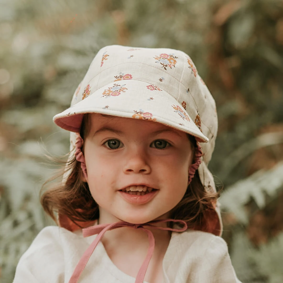 Bedhead Heritage Lounger Baby Flap Hats are light on heads, making them the ideal first hat for babies as they forget they're wearing them! The soft flap lies flat behind baby's neck while they're in a pram or baby carrier, and the brim is slightly upright letting them see the world. Made from 100% eco-friendly linen which can self-cool in summer and warm in winter, the Lounger hat provides UPF50+ sun protection without overheating little heads.