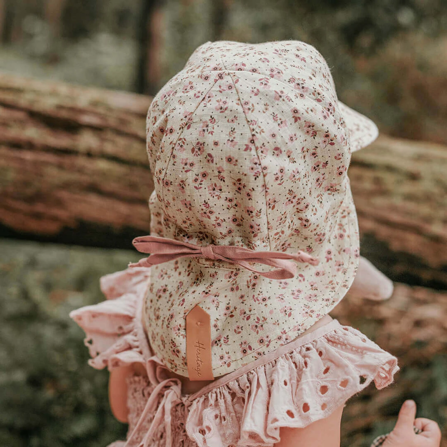 Bedhead Heritage Lounger Baby Flap Hats are light on heads, making them the ideal first hat for babies as they forget they're wearing them! The soft flap lies flat behind baby's neck while they're in a pram or baby carrier, and the brim is slightly upright letting them see the world. Made from 100% eco-friendly linen which can self-cool in summer and warm in winter, the Lounger hat provides UPF50+ sun protection without overheating little heads.