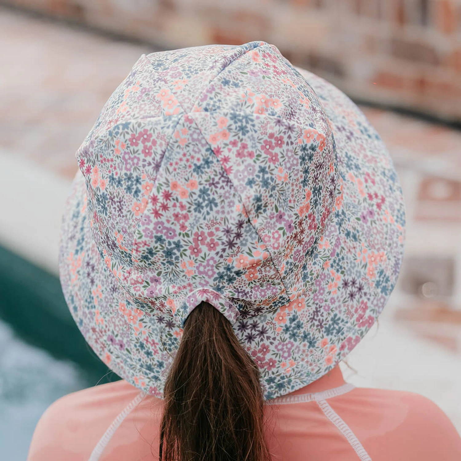 The Bedhead Ponytail Swim Bucket Hat is a UPF50+ kids sun hat with our unique 'anti-flop' brim that won't flop in front of children's eyes!