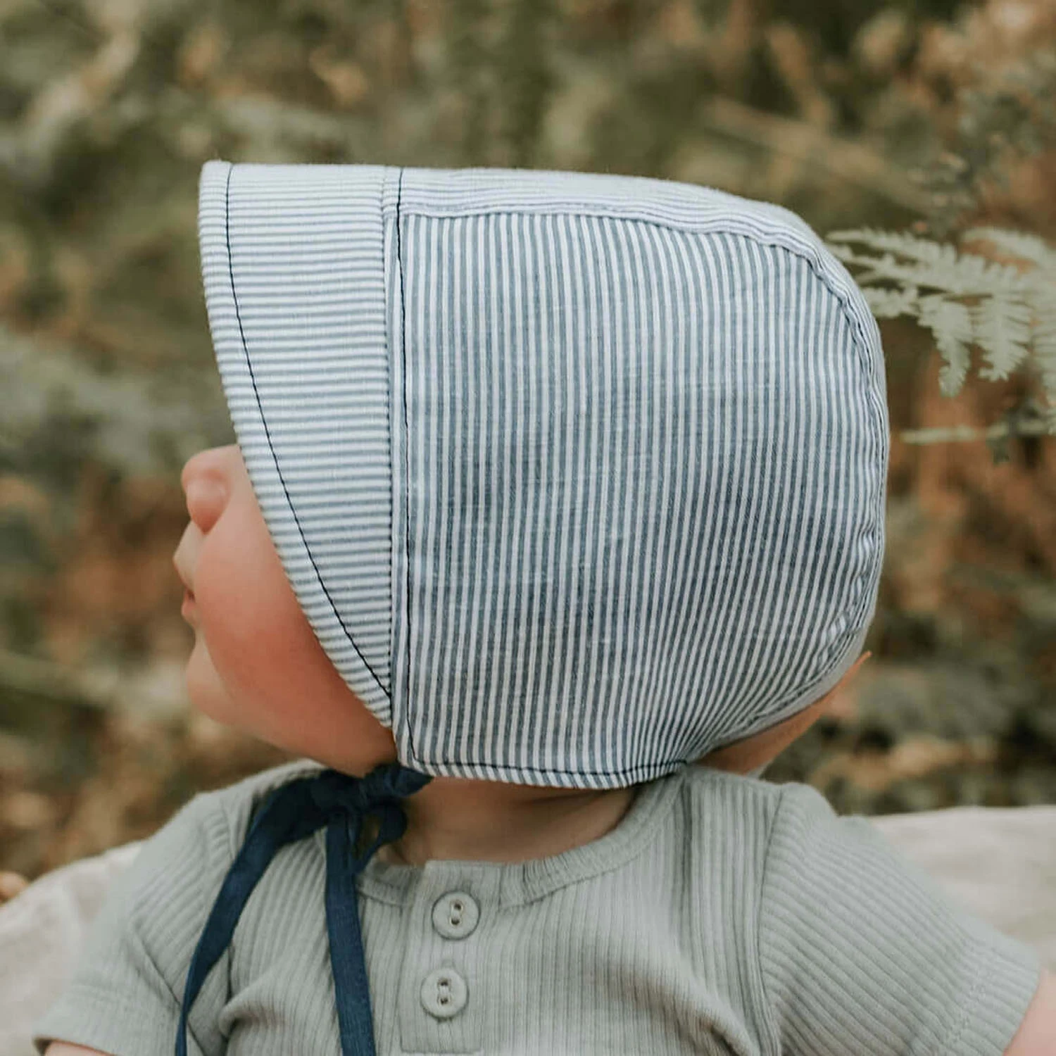 Perfect for all the family! Our Charlie print features inky blue and white stripes with a reverse of Indigo. Available in Sun Bonnet, Flap Hat, Classic Bucket, Ladies Wide Brimmed Visor, Adults Frayed Bucket Hat and Ladies Sun Hat.