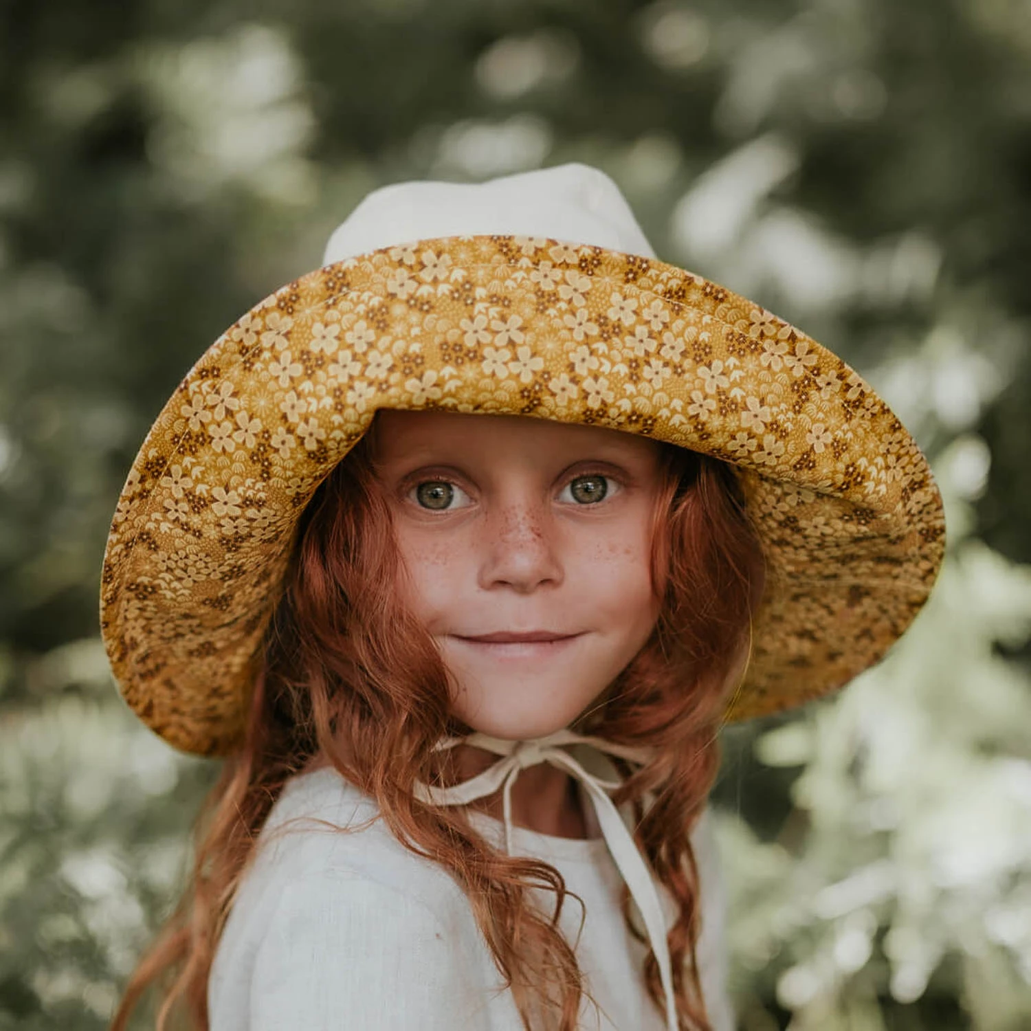 'Sightseer' Girls Wide Brimmed Sun Bonnet -Farah / Flax