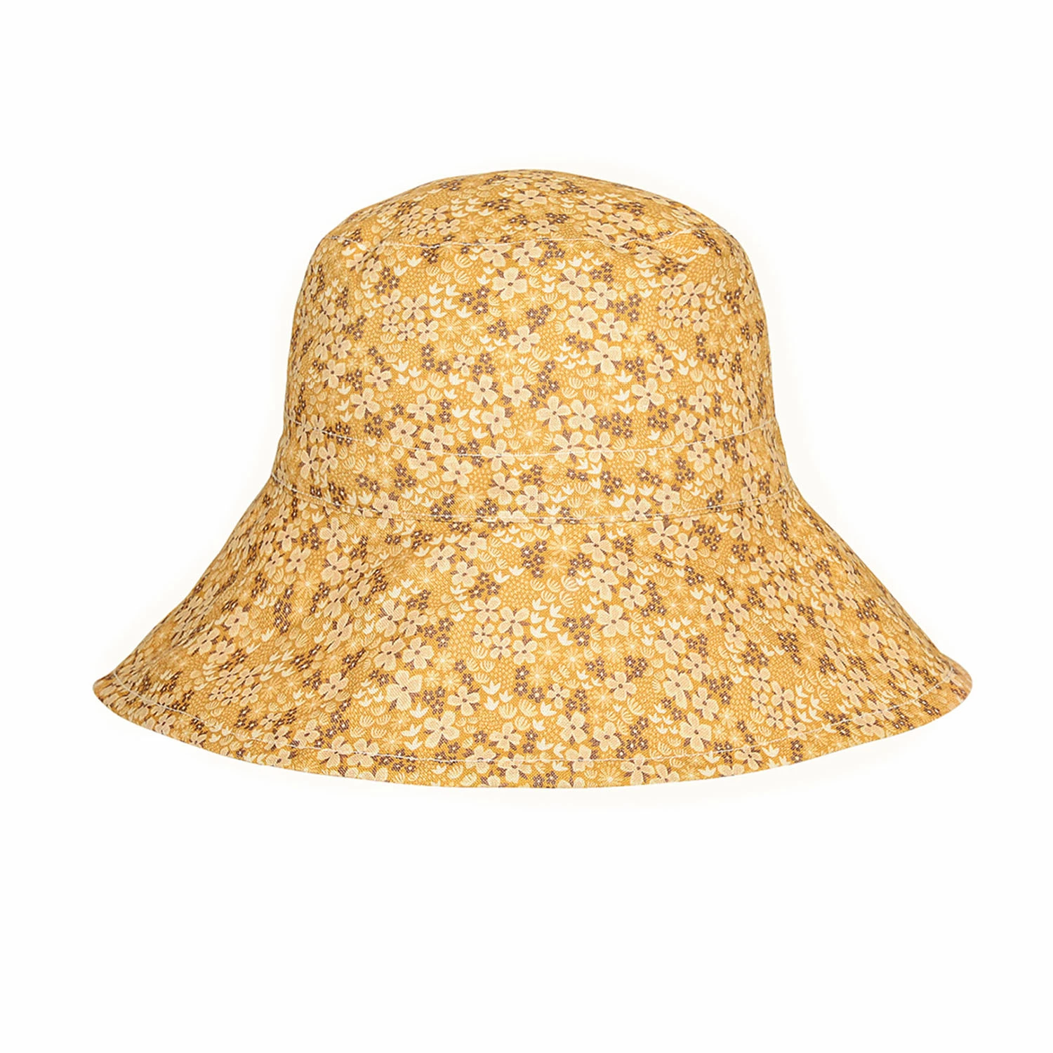 It’s impossible to have a bad day in Farah! So sunny and cheery with its tiny golden blooms and dark purple flowers. The reverse of simple Flax keeps things light and airy. Available in Ruffled Bonnet, Flap Hat, Wide-Brimmed Bonnet, Panelled Bucket and Ladies Sun Hat.