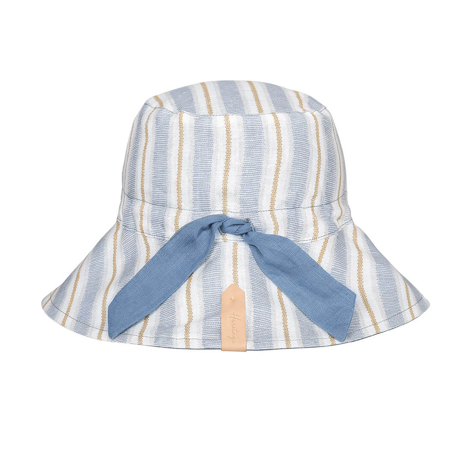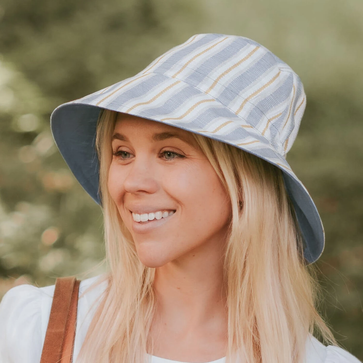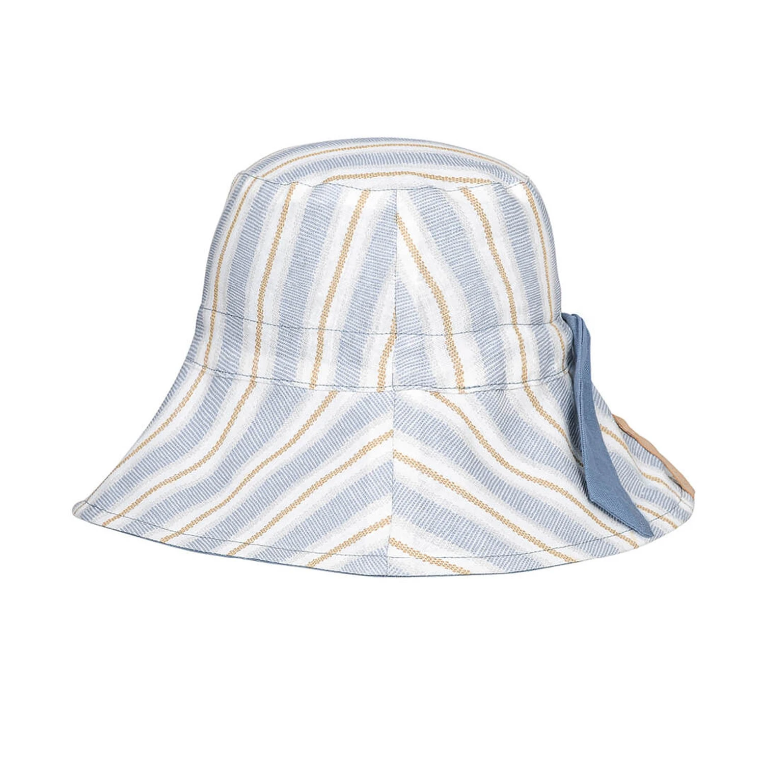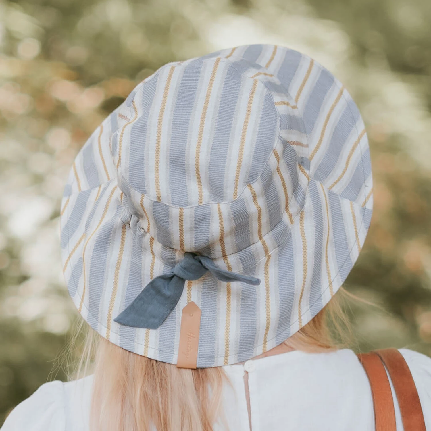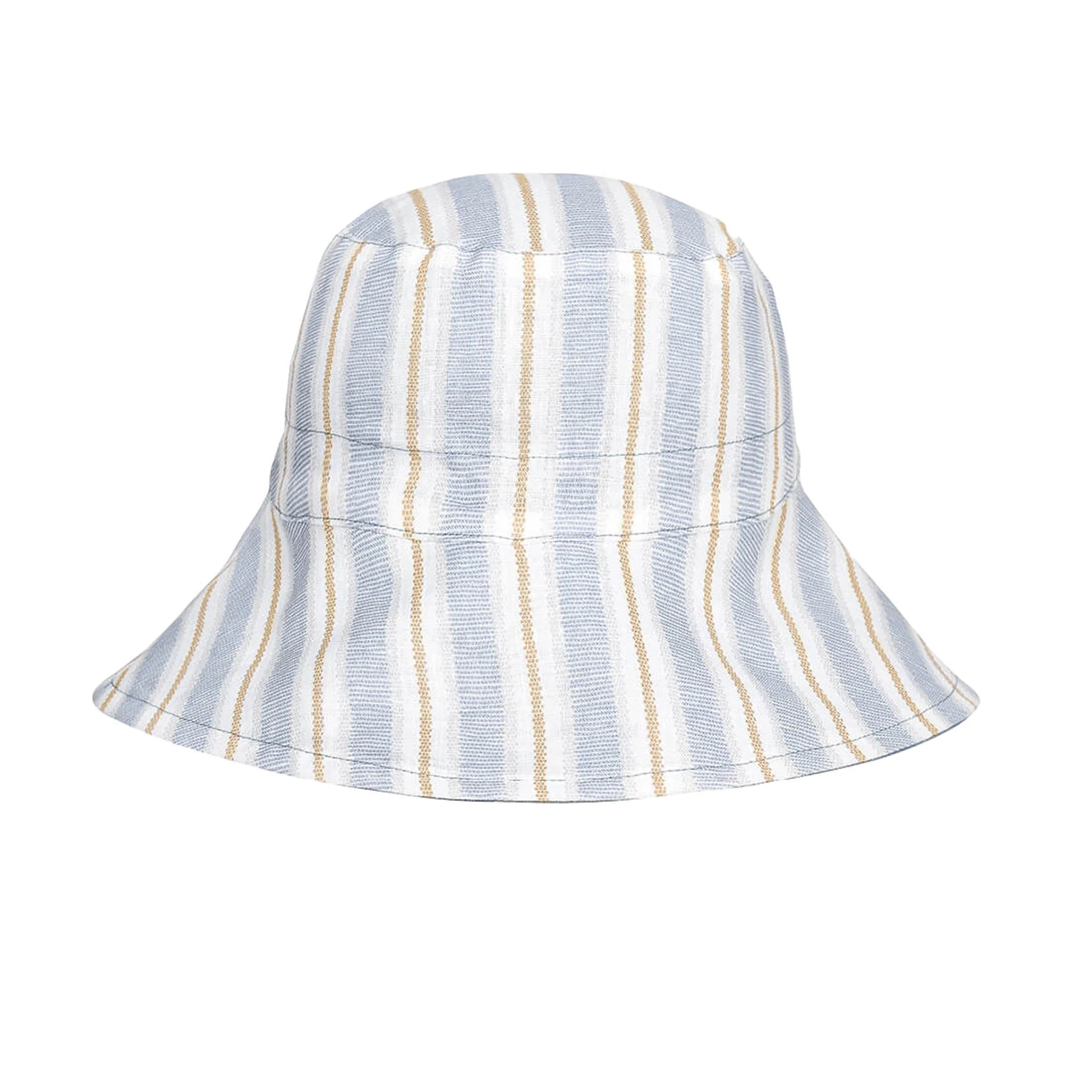 Spencer is a modern take on classic French ticking fabric and we are here for it! In soothing blues and mustard, it’s paired with our fave grey/blue colour Steele for a fresh, summery look everyone will love. Available in Sun Bonnet, Flap Hat, Classic Bucket, Ladies Wide-Brimmed Bonnet, Adult’s Frayed Bucket and Ladies Sun Hat..