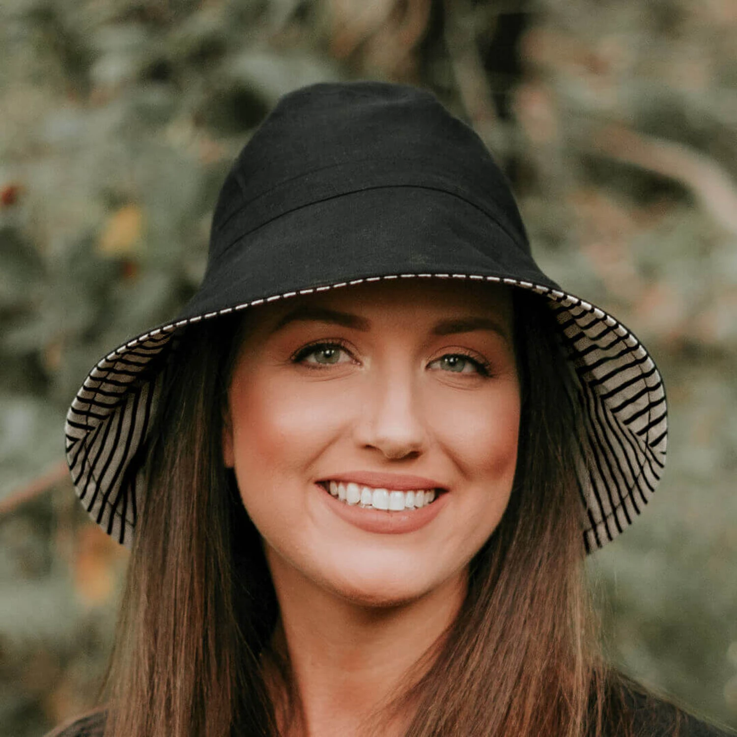 Just try and stop us creating classic stripes! This one is simple black and (almost) white with a reverse of sleek Ebony to go with everything. Bobbie is available in Classic Bucket, Ladies Wide-Brim Visor, and Adults Frayed Bucket.