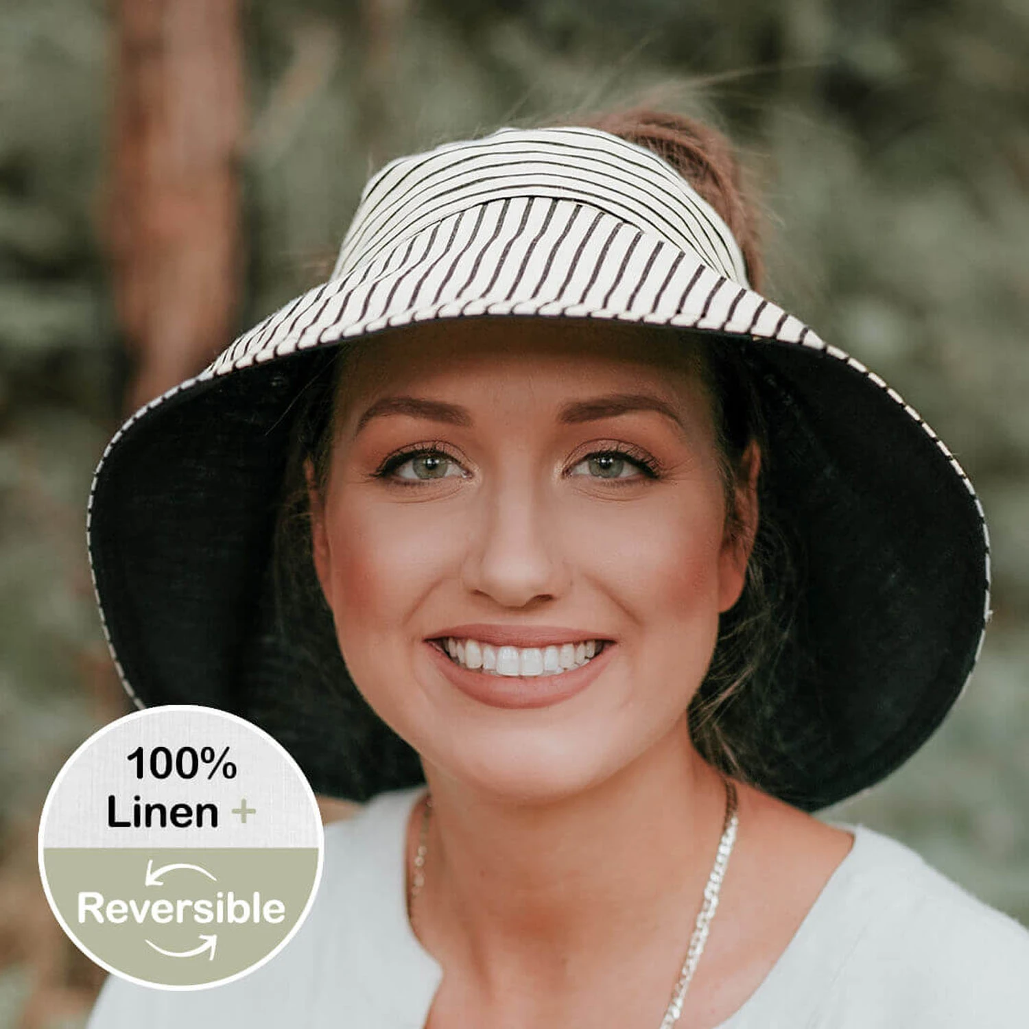 Just try and stop us creating classic stripes! This one is simple black and (almost) white with a reverse of sleek Ebony to go with everything. Bobbie is available in Classic Bucket, Ladies Wide-Brim Visor, and Adults Frayed Bucket.