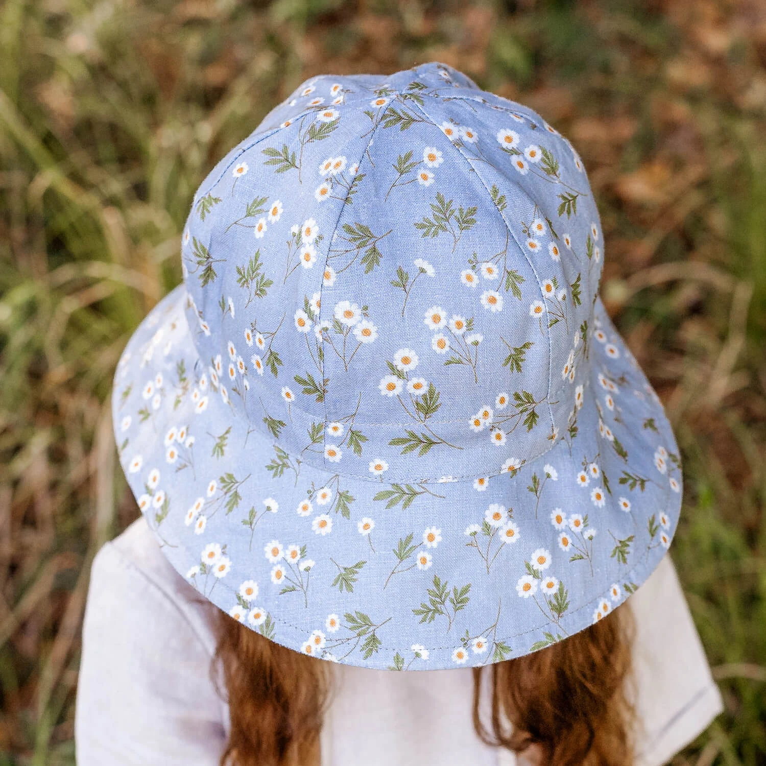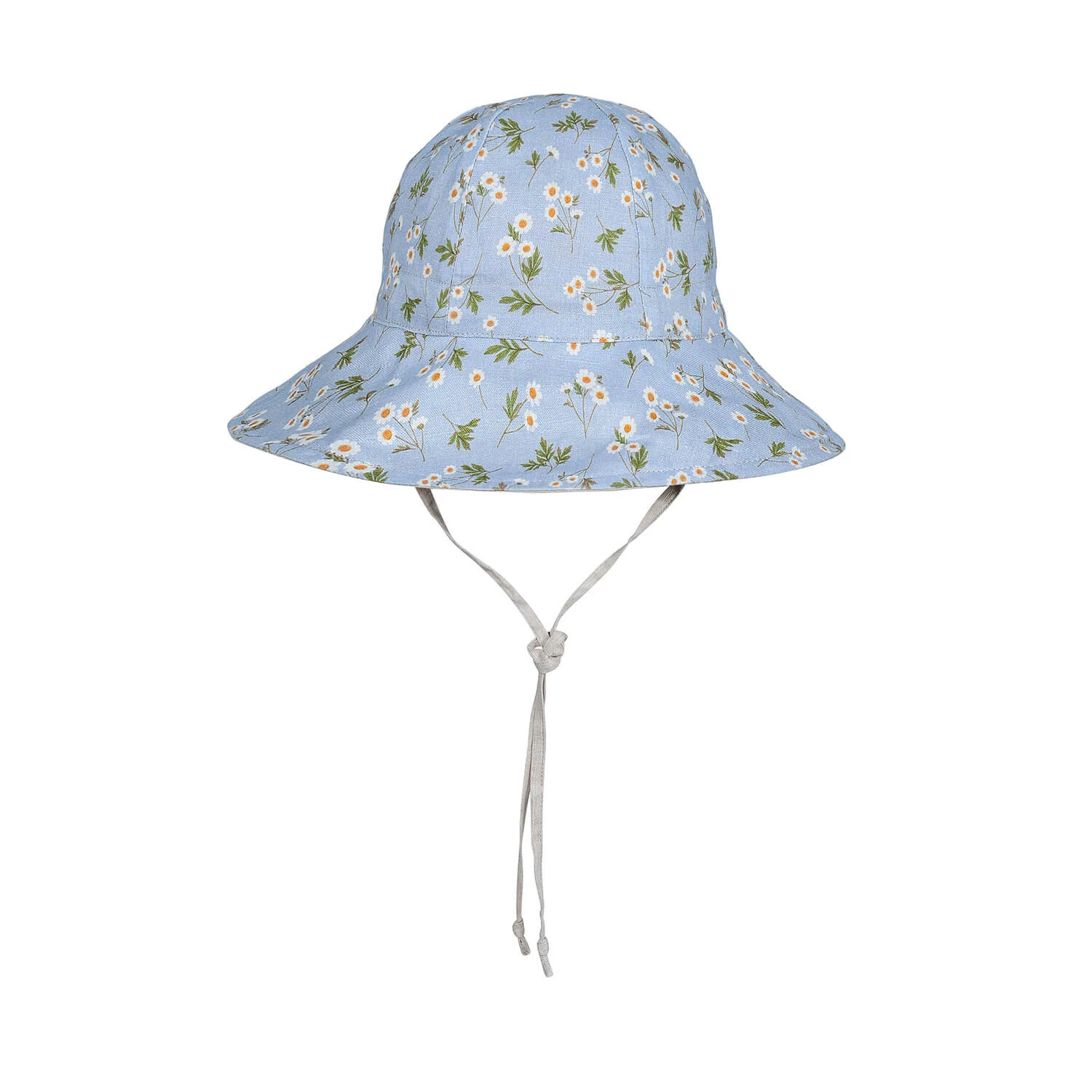 Light and lovely, our Daisy print is pure picnic-day perfection. The classic combo of white florals and soft blue sky makes this hat a go-to for every sunny outing. It’s fully reversible with a calming flax linen for a toned-down option, giving versatility and timeless style in one.