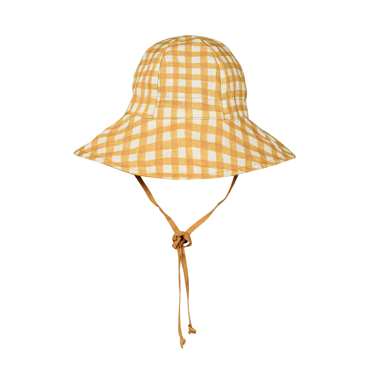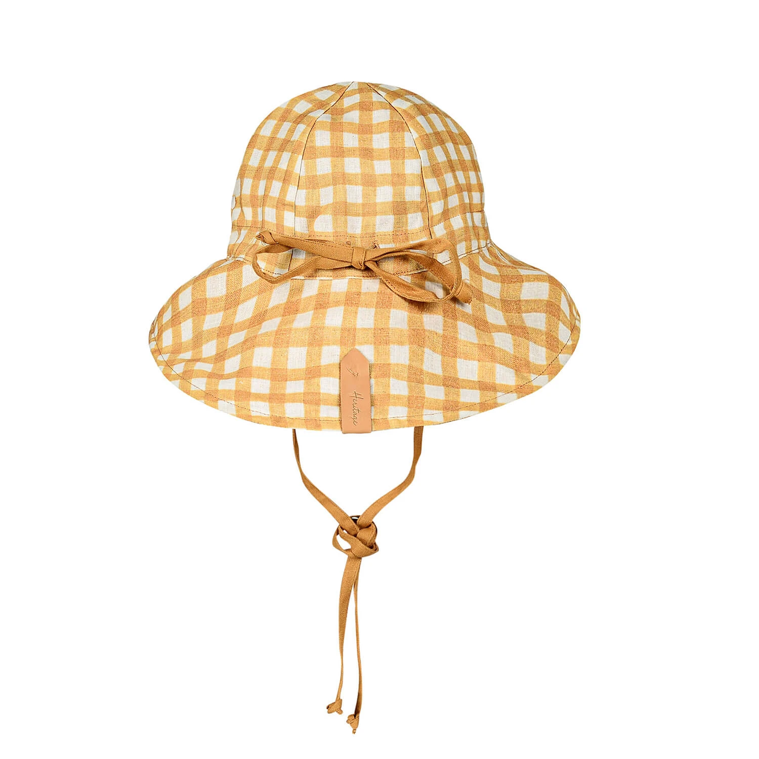 Made from breathable 100% linen, the Wanderer offers UPF50+ sun protection, a wide brim for shade, and a deep crown for a secure fit. Crown ties adjust to size, and soft chin straps hold everything in place for busy little adventurers.