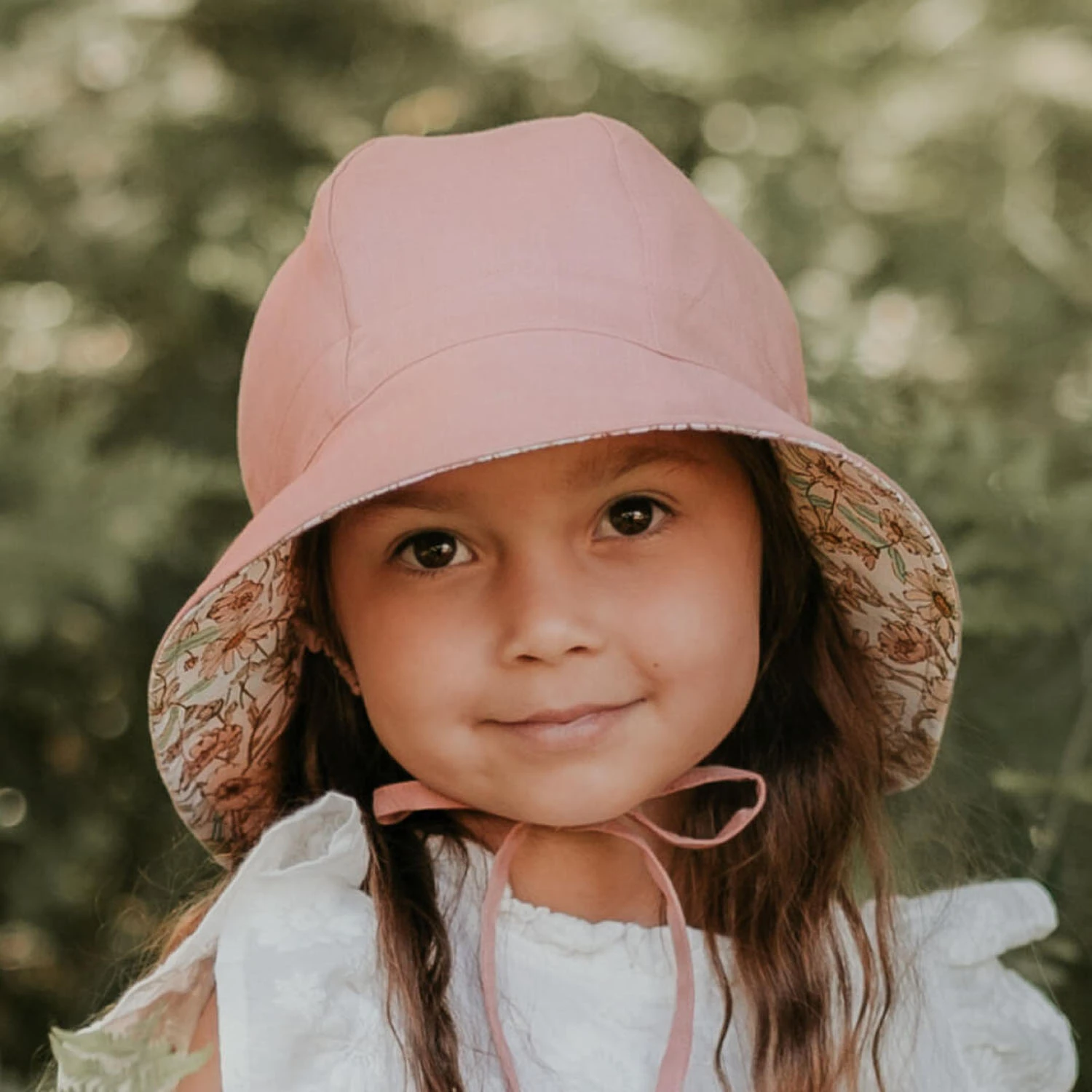 Shapely and stylish with a deep panelled crown, our girl's bucket hats are light and cool on heads, making them hats kids don't even realise they're wearing! Made from 100% eco-friendly linen which can self-cool in summer and warm in winter, the Wanderer hat provides UPF50+ sun protection without overheating heads. The wide brims shield eyes and faces all year round, while the woven interfacing and thin cord edge in the brim gives a little more flexibility and shape without flopping in eyes.