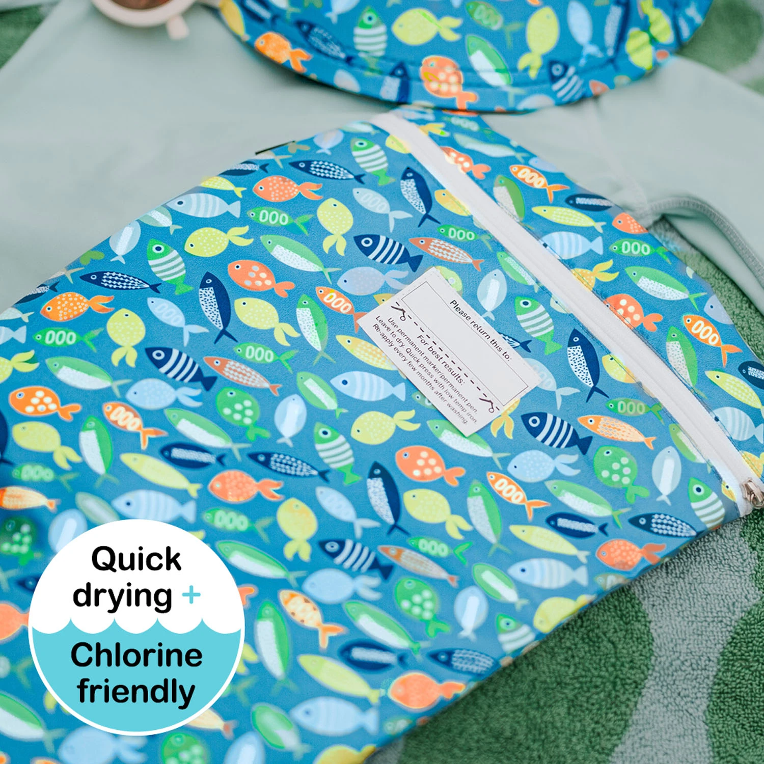 Simply wring out wet cossies, pop them in Wet Bag and close the zip. Available in our range of coordinating Swim hat prints - your little one will be the coolest kid this season!