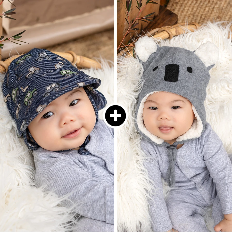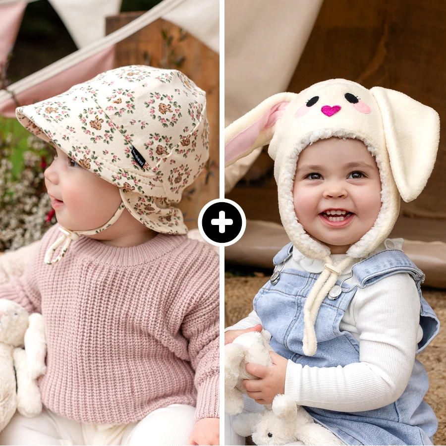 One UPF50+ kids sun hat and one snuggly fleecy beanie, ready for whatever winter throws at the week. Cold morning daycare runs, weekend park trips, and everything in between. No scrambling for layers. No chilly little ears.